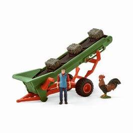 Schleich, Hay Conveyor With Farmer, Unparalleled Attention To Realistic Scale & Detailing, A True Reflection Of Nature On A Smaller Scale, Made Of High Quality Vinyl Plastic & Hand Painted, 9.05" x 4.331" x 7.96", For Ages 3 & Up.