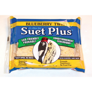 Feed your backyard birds without the mess with the Suet Plus Blueberry Twist Suet Cake. This superior melt resistant formula contains the highest quality ingredients that will attract a variety of birds to your yard.